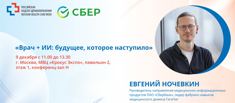 Приглашаем вас принять участие в дискуссии «Врач + ИИ: будущее, которое наступило» от генерального партнера «Российской недели здравоохранения» ПАО «Сбербанк», которая состоится 9 декабря с 11.00 до 13.30 в рамках научной программы Международного научно-практического форума «Российская неделя здравоохранения-2025».