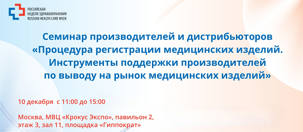 10 декабря 2025 г. в рамках деловой программы Международного научно-практического форума «Российская неделя здравоохранения-2025» с 11:00 до 15:00 пройдет Семинар производителей и дистрибьюторов «Процедура регистрации медицинских изделий. Инструменты поддержки производителей по выводу на рынок медицинских изделий», который соберет ведущих экспертов ФГБУ «ВНИИИМТ» Росздравнадзора.